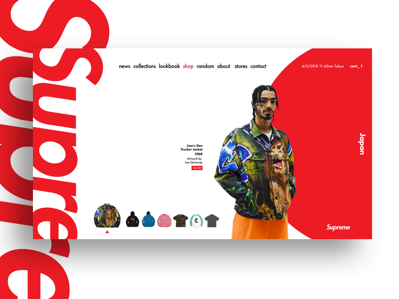 Website layout concepts for high end streetwear powerhouses Supreme Japan & Acapulco Gold Nyc.