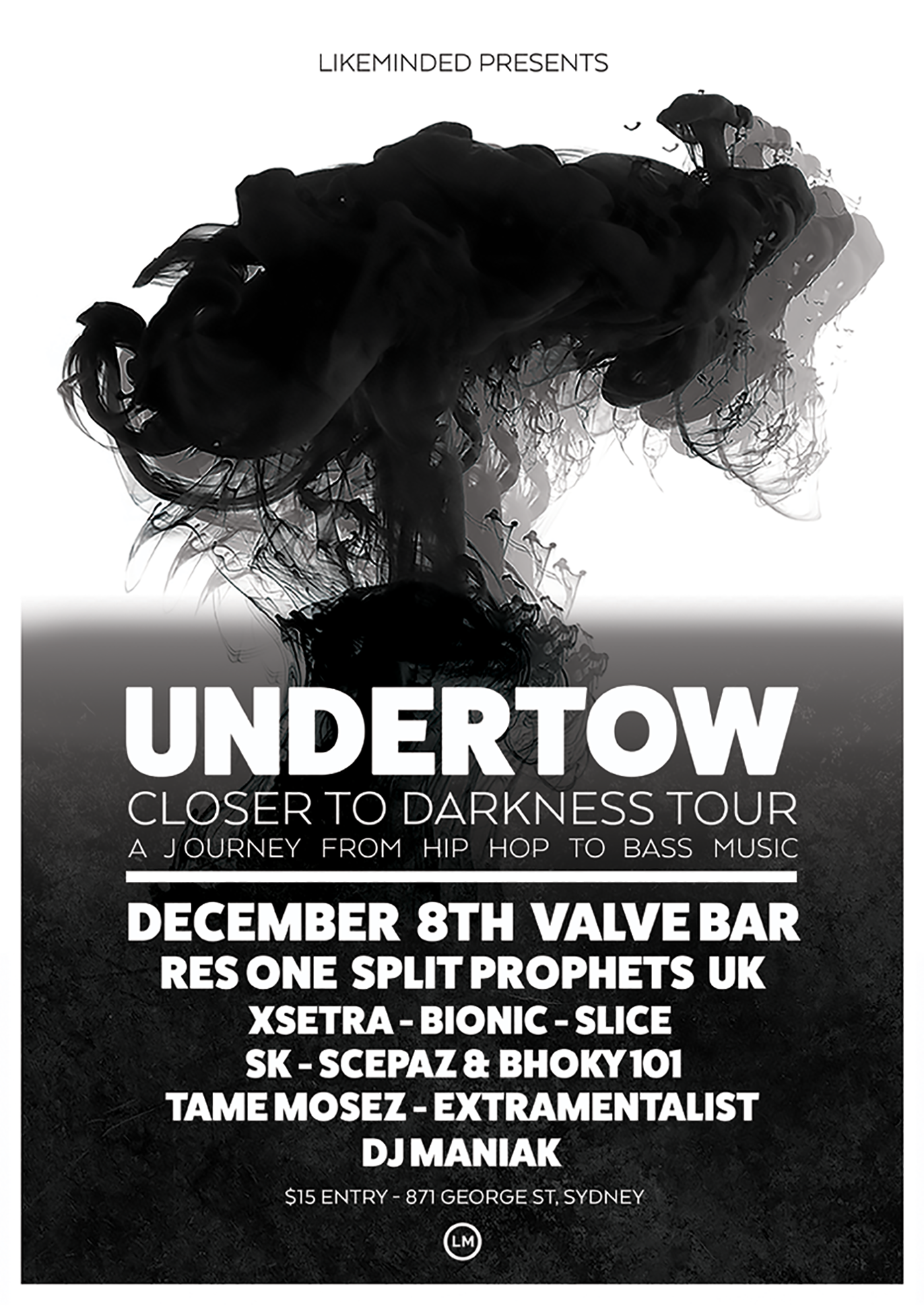Recent work for ongoing clients Likeminded Records for Undertow's recent EP Closer To Darkness. Brief included album artwork and design for vinyl 12' and cd including packing and digital covers, tour poster and elements print and digital, website concepts and promotional video teaser.